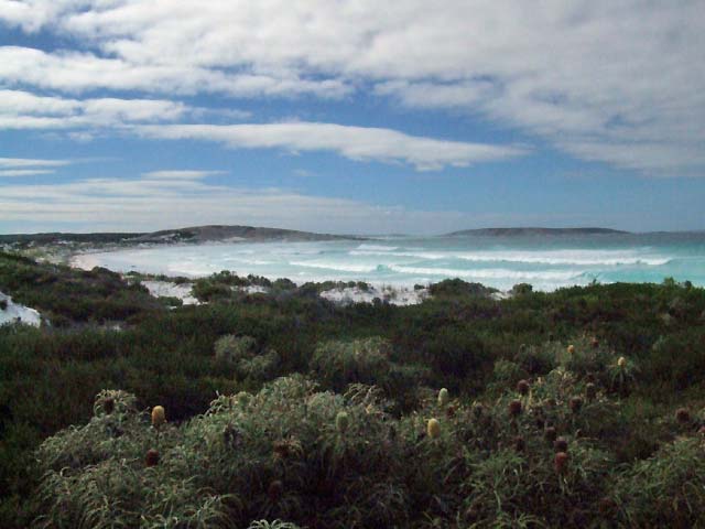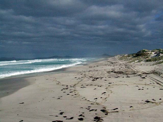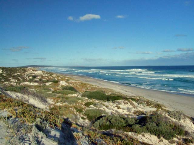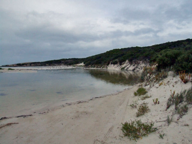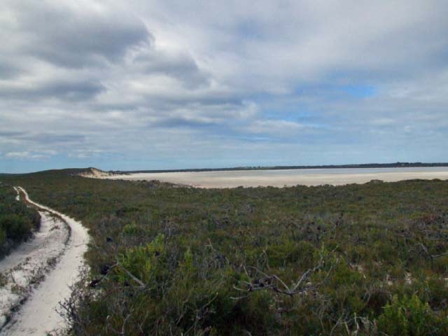 The tracks into Thomas Fisheries and Hill Springs are easy to negoiate. The track runs along the base of Mt Arid and is generally hilly. There is camping at Thomas Fisheries, Jondee Creek and Seal Creek. The beaches east of Poison Creek can only be accessed by crossing the creek mouth and this may be closed in winter. The right hand side of the creek offers the best access, the middle can get quite deep. Upon crossing the creek, follow the wheel tracks along the beach until they swing left and up onto the ridge (ES82) that runs parrallel with the beach.