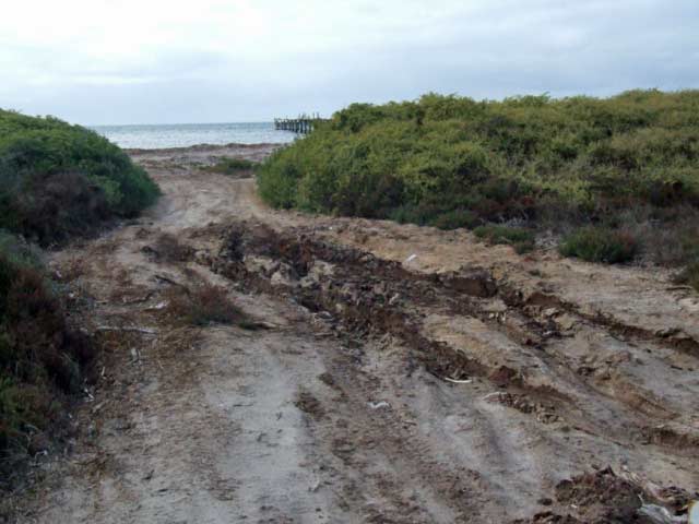 Travelling from Pt Malcom to Isralite Bay takes you past the ruins at ES124 and then onto the mud flats, bringing you to the Telegraph Station at Isralite Bay. There are a collection of tracks in front of the Profesional Fishing camp that takes you to the coast. (ES84)The entry to the track through the cutting and onto the beach in front of the old jetty can be hazadous.