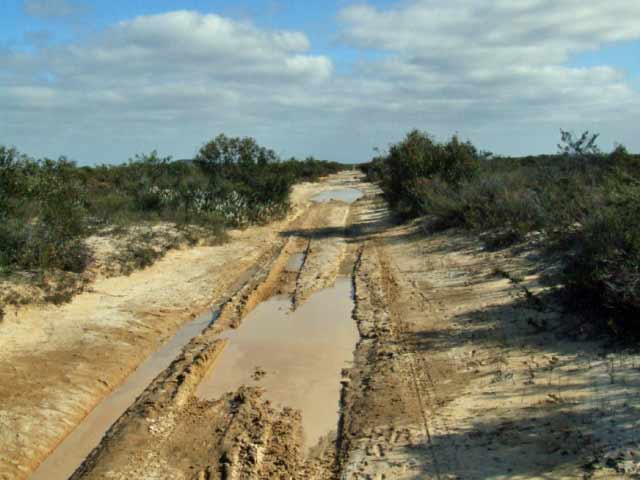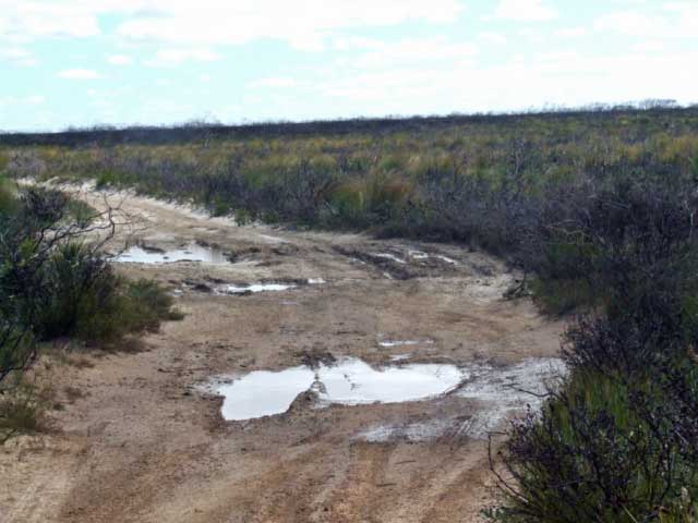 The track into Alexander's Beach has been improved by the Esperance Shire council allowing camper trailers/boats easy access. The track that takes you to Kennedy' Beach at the intersection of Merrivale rd and Exchange rd has had gravel dumped at the first two mud sections (ES41 & ES42) and is a lot easier now. The track is still pretty chopped up as you get closer to the coast. There are small water holes that you may have to negoiate around also. Some of the gravel sections towards the coast require you pick your way over washed out stretches.