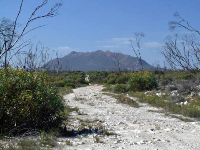 Gora rd is a sandy track at the Israelite Bay end, changing to rocky terrain about half way to Mt Ragged. Gora rd intersects with Ballodonia rd and the Mt Ragged turnoff is about 100m due north of here. Balladonia rd starts at Fisheries rd, as a series of waterholes in the track. There are detours towards the end of this terrain starting at ES169 and ending at ES175. From here the Balladonia rd changes to limestone running into gravel towards the Gora rd junction. Balladonia rd can be risky in the wet. Balladonia rd north of the of the Mt Ragged junction (ES183) can be badly corragated on the way to Balladonia.