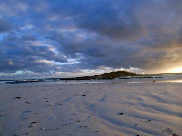 Point Malcom has a camping area setback from the Point itself behind a hill providing shelter from the prevailing wind. From the camping area you will see the track to Point Malcom go over this hill, if you look to your left there is another track. This sidetrack will take you onto the beach, where travelling a short way another track will take you off the beach and back onto the track to Point Malcom. Beawre that the small section of beach you have to travel, can become blocked with seaweed and turn into a bog.