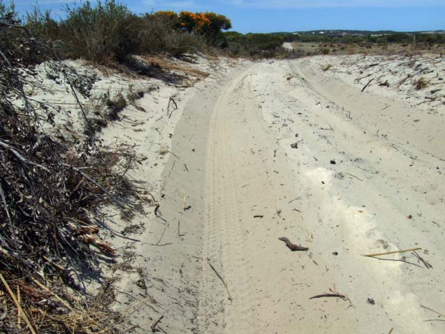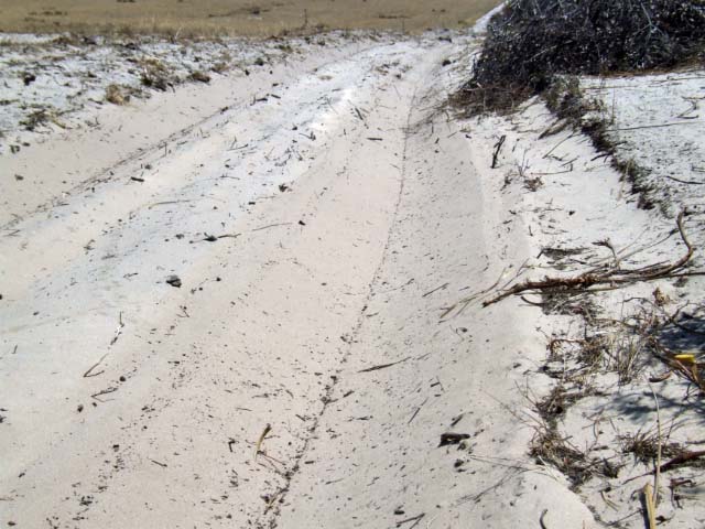 The track at MUN49 will take you to the eastern end of the the MUN15 Beach. A recent wildfire has meant that the track has been cleared wider to act as a firebreak. MUN46 does not allow easy access to the beach and getting back out of the parking area will require low tyre pressures. There is a track heading west about 1.8 to 1.85 KM past the last fenceline. We did not travel this track, though it looks to take you to a dune area (1.4KM) with difficult beach access.