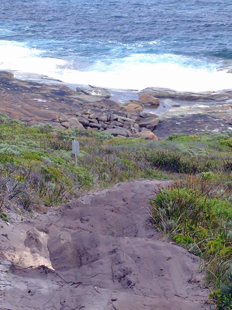 The Rope Hill track has been rehabilitated with the help of the Denmark Boating & Angling Club and the Walpole Work Camp. The track has rubber matting at the more difficult hill climbs now. It is prudent to park your car at BH12 if want to access the cliff at BH13 due to the confined turning area.