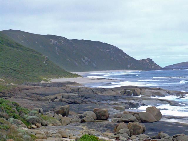 The tracks around Boat Harbour beach provide you with access to the headland area only. Generally the headland is rock sloping to the ocean is dangerous. There are grassed camping areas (BH06) on either flank of the harbour. The toilet area is near the beginning of the Rope Hill track. Beach access is easy.