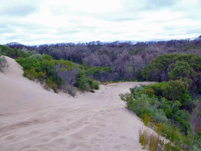To get to Little Quarram Beach from the Boatharbour you have to go back to BH04. At this point you keep driving straight. There is a sandy hill climb along here, though there is a detour track around it. Turning left at BH20 will take you to the sheltered campsite (BH22). The track is quite good along here and has railway sleepers at one difficult section.