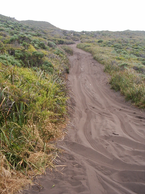 The beach is a favourite with fisherman chasing salmon. At the bottom there is a track that will take you onto the beach allowing you access in either direction. A word of warning this place can stop you in your tracks due to the incline of the hill climb, very soft sand with a few woop de doos thrown in to top off. If you get stuck the only way out is to walk back to the road and find the local guy who owns a tractor (this will cost you).