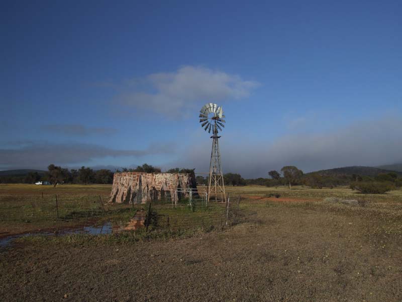 The turnoff to Wardagger Stone Well lies about 4km east of Billgabarna bore (NI04). Along this stretch you find a good campsite at the Breakaways (NI20). It is about 2.6km north from the intersection to the well which lies at the base of Wardagger Hill. There are camping areas here and some quieter ones to the west at NI23. Wardagger Well was part of the camel drivers route from Paynes Find to Ninghan Station. Following the winding track east of Wardagger Well will take you out to Barley Well (NI30) and the old out station (NI28)