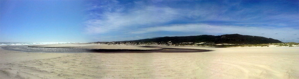 Following the track parallal to the beach brings you to a small creek that feeds in from the hills to the ocean. There is easy access to the beach itself just after you cross the creek. The track does continue further west behind the coastal dunes for abour 5km. There are a few access points to the beach along here also.