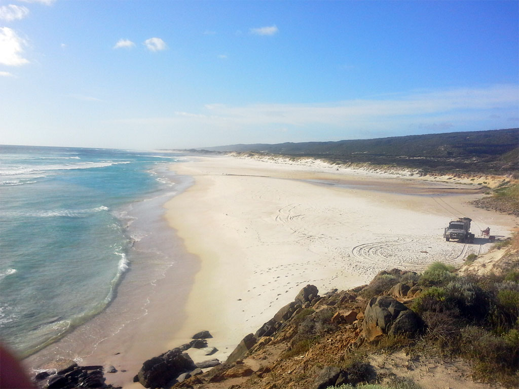 - The Summertime track starts about 10km south of Northcliffe and is 16km north of Windy Harbour. The track is closed from June to October or when unseasonal wet weather strikes (Locked Gate). The track will bring you out at the southern end of the Warren beach. From the southern point of the beach it is about 10km to the Meerup River, then 4.5km to the Calcup Hill exit point. A further 6km will bring you to the Yeagarup Dunes exit. Be aware that there are 2 river crossing to achieve this.